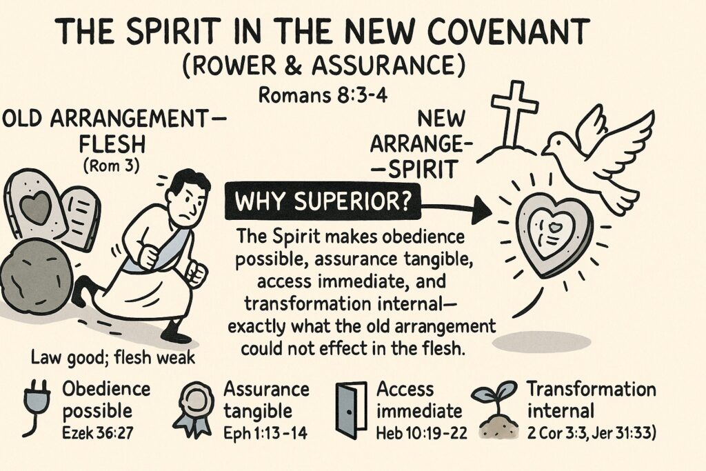 Why superior? The Spirit makes obedience possible, assurance tangible, access immediate, and transformation internal—exactly what the old arrangement could not effect in the flesh.